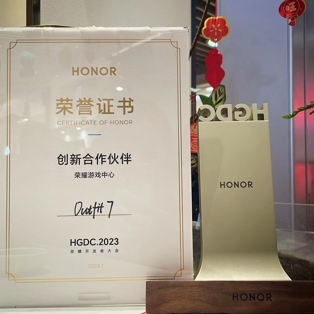 近期,第二届荣耀开发者大会(HGDC 2023)在上海世博中心圆满落幕,期间,荣耀游戏中心在大会上展示了其依托荣耀生态及系统资源,在游戏分发、运营等多个层面上的突破成果。作为荣耀游戏的深度合作伙伴,公司全资子公司Outfit7受邀参会,并凭借汤姆猫家族系列产品过硬的品质内容以及创新互惠的合作理念荣膺荣耀游戏中心“创新合作伙伴”称号。